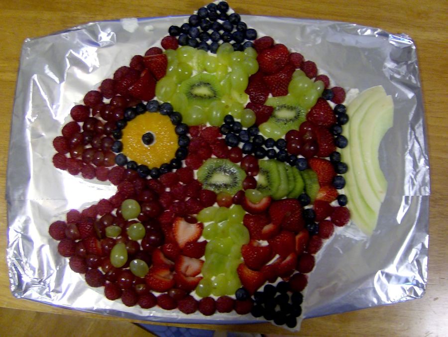 This is a sponge cake with chanitlly cream and covered in fresh fruit. It was for my friend's 4 year old son. He loves fish and fruit so...