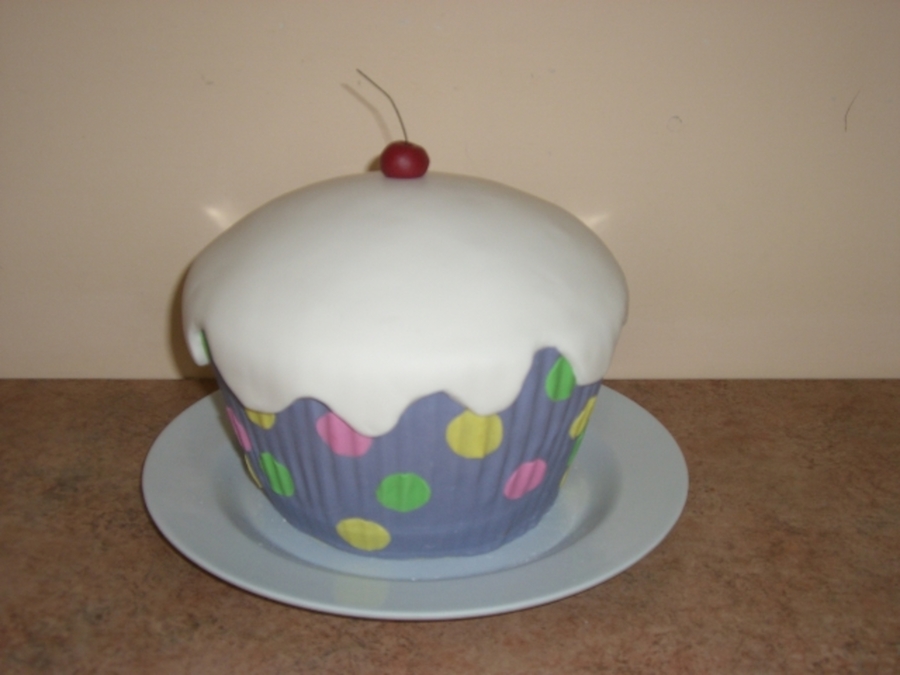 My first cupcake cake. It's carved from a 6" and 5". Covered in fondant, with a fondant cherry.