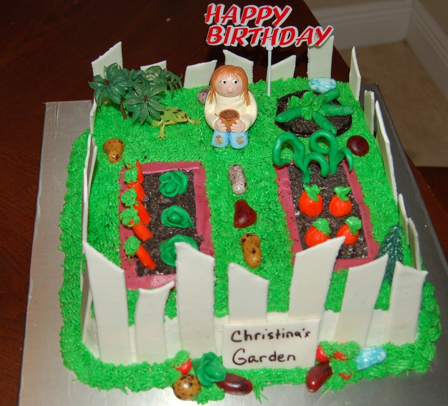 I made this for a lady who just planted a garden. Vanilla cake with fondant decorations. The fence is fondant and gumpast mix. Thanks for looking.