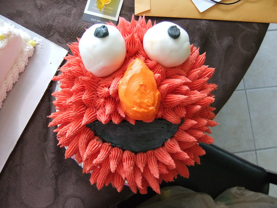Just a 6" cake with buttercream & fondant eyes...I think Elmo looks a wee bit possessed lol!