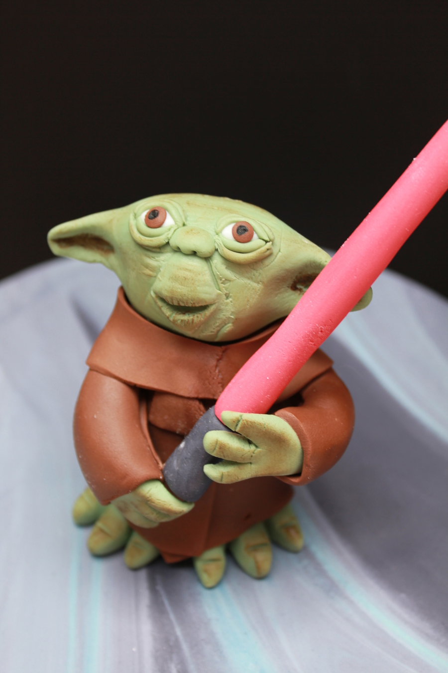 Ok, I know now that Yoda has the wrong color light-saber. I have all girls so didn't realize it, but this cake was for a good friend and the 5 year old boys didn't mind....
