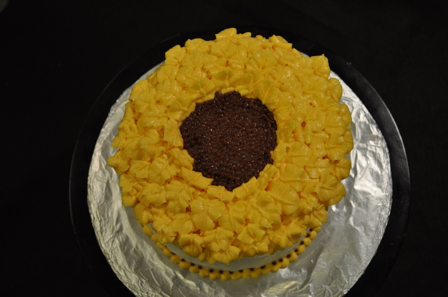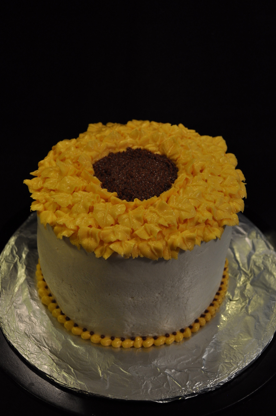 A tall 6" cake. I made the petals with tip #68, but wasn't thrilled with the results. I had to add so much piping gel to the buttercream that it really lost its shape. Next time I'll try a #355. If you have any other suggestions on how to do this flower for next time, I'd love to hear them!