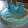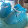 Orange flavored cake with buttercream icing. The booties are gumpaste