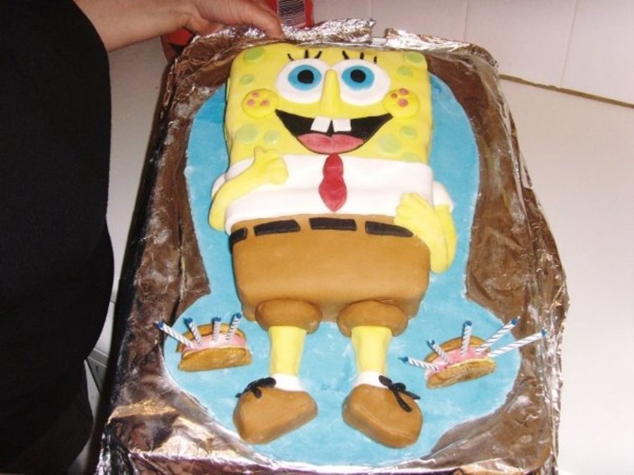 made for a spongebob mad uncle s 40th choc sponge with vannilla bc coverd in fondent