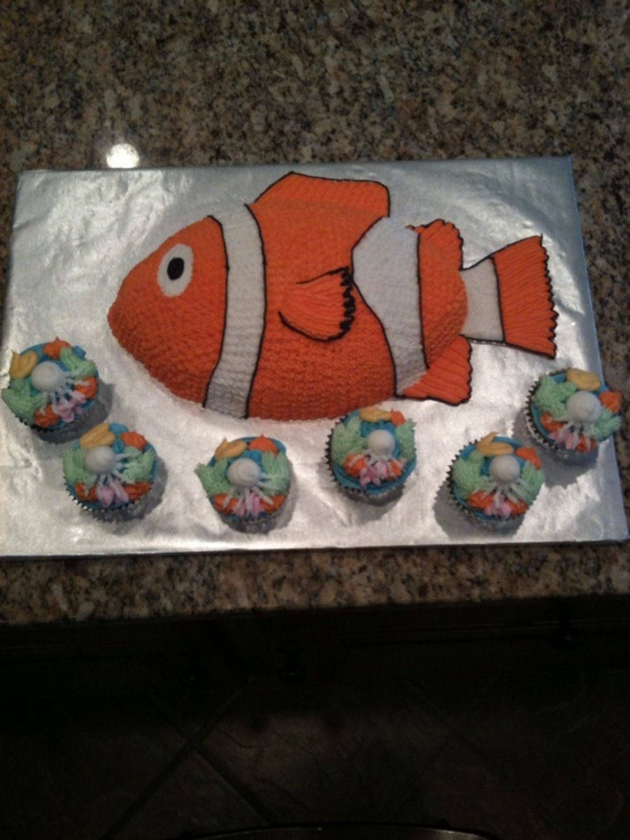 Clown fish with ocean theme cupcakes