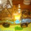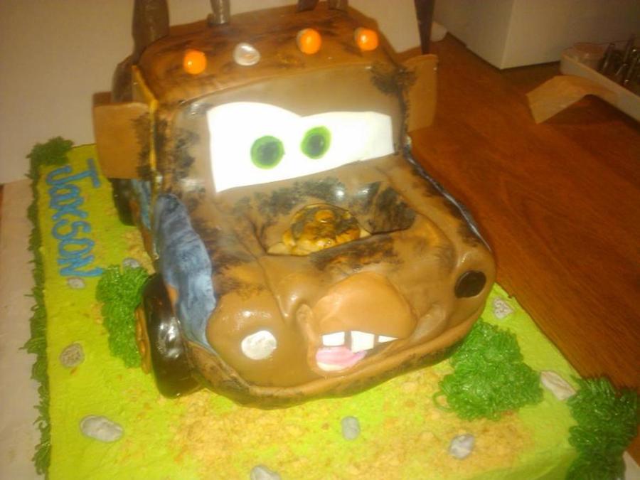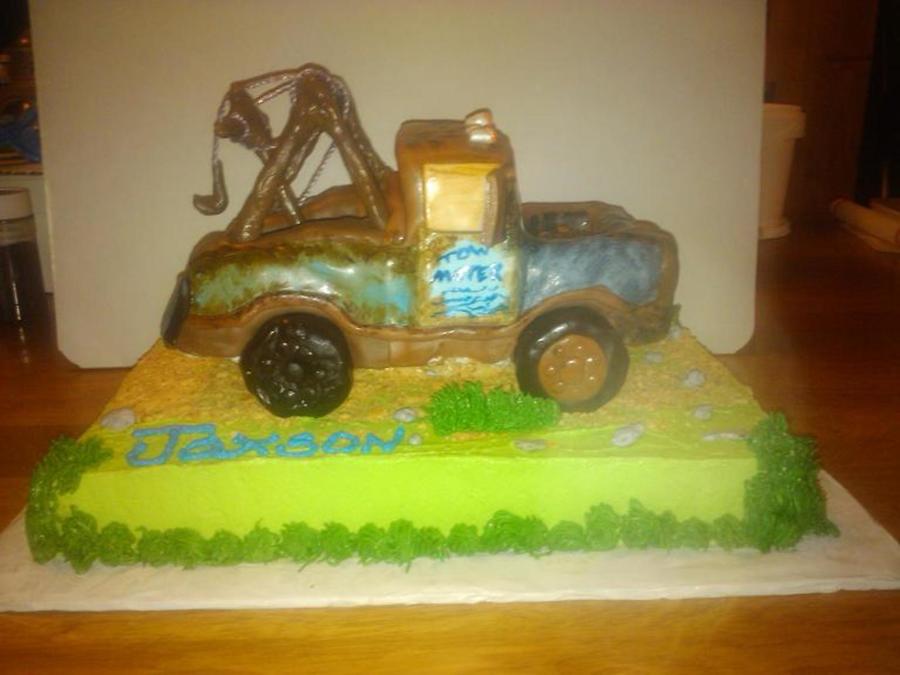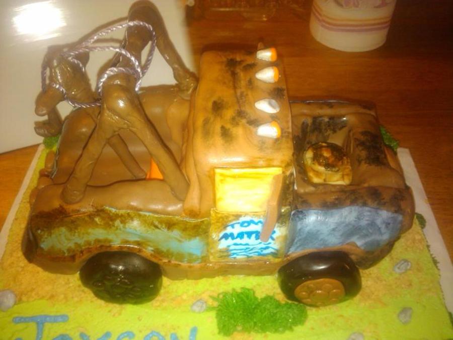 RKT and fondant Mater on 1/4 sheet cake. The "tow rigging" only thing non-edible.