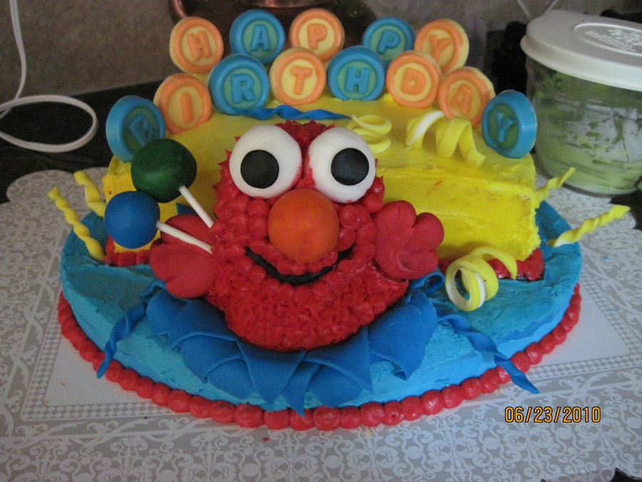 Originally wanted to do an Elmo suprise cake, but it was awful. This is what I ended up with! If anyone knows how to do the Elmo Surprise cake, with the candy, please let me know!