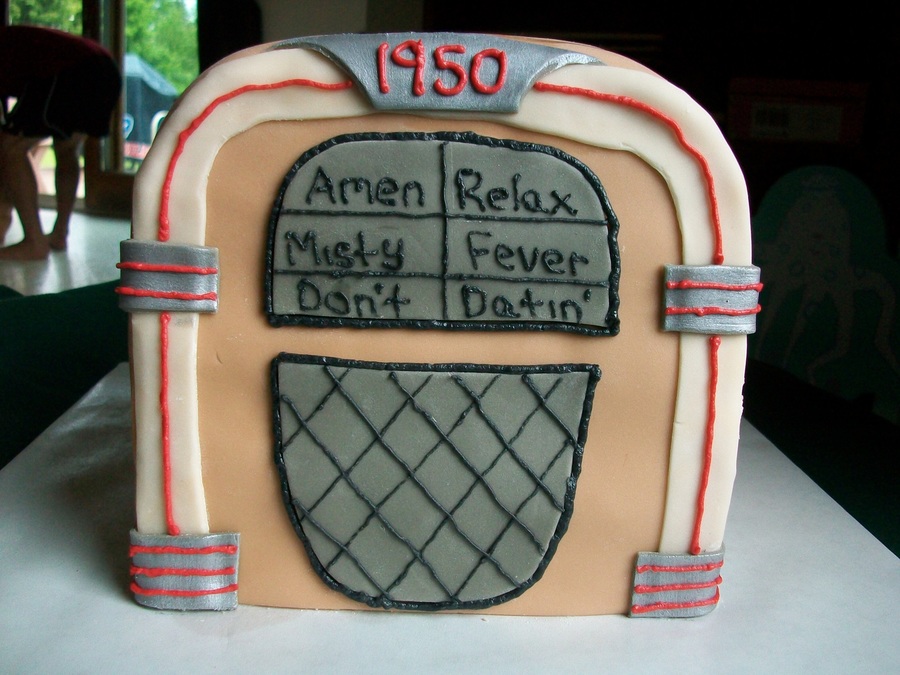 Made this to go along with the Elvis cake for my father-in-laws birthday. Five of the song titles are Elvis songs and the sixth title is my in-laws wedding song.