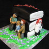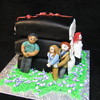 Red Velvet cake with cream cheese icing. Characters and ribbon made from gum paste. Characters are 4 main characters of Twilight Eclipse: Bella, Edward, Jacob & Victoria