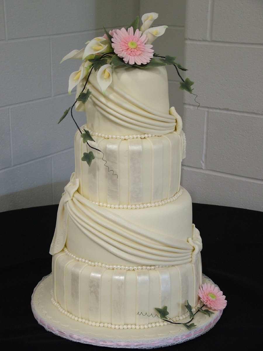 All fondant.with gumpaste flowers. Ivory white chocolate fondant.