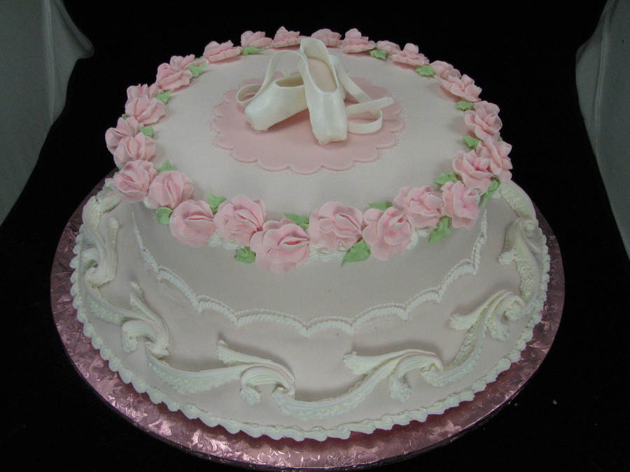 Gumpaste pointe shoes, royal icing sweet peas and Lambeth style scrolls.