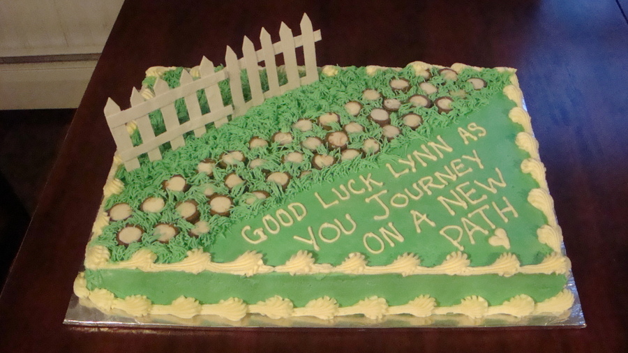 Sculpey fence, Lindt truffles for the path. I used truffles because of her husband's ties to them at his job.