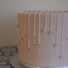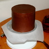 This is a bad photo! (I might try for a better one in the morning light) but it is an 8" tall, 6" round alternating layers of white chocolate mud cake and milk chocolate orange mud cake with dark chocolate ganache filling and covered in fondant. My piping skills really need practice - much harder than it looks to get nice straight lines!