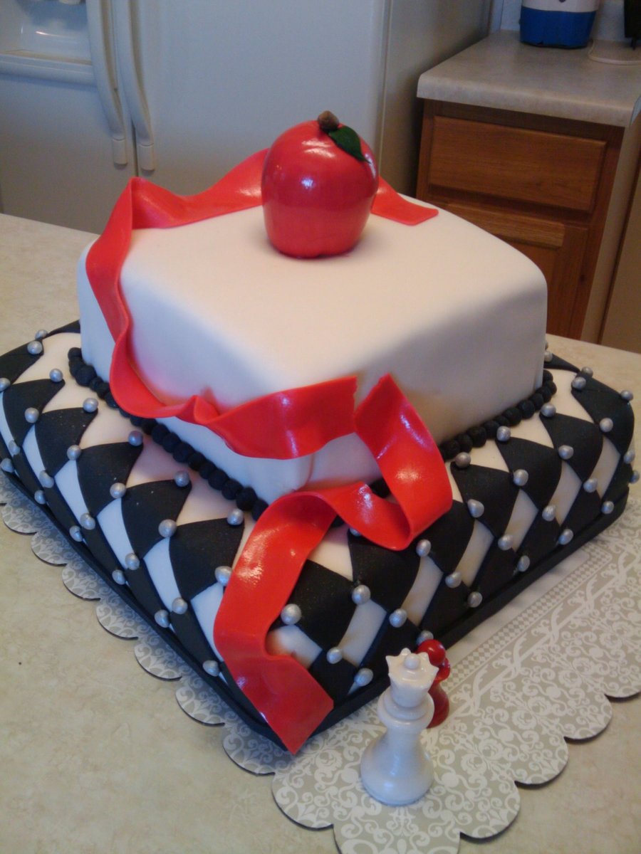 A Twilight Themed Cake for my Sister's Co-Worker. I made the Apple, Ribbon, and Chess Pieces out of fondant.everything is eatable.