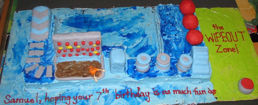 1/4 sheet cake, cut in 1/2. RKT sucker punch, stairs, ramp and big balls. Decorations in fondant. Made this cake for my son's birthday.