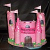 customer wanted one cake with two different side. One side is a castle and the other is a stage.