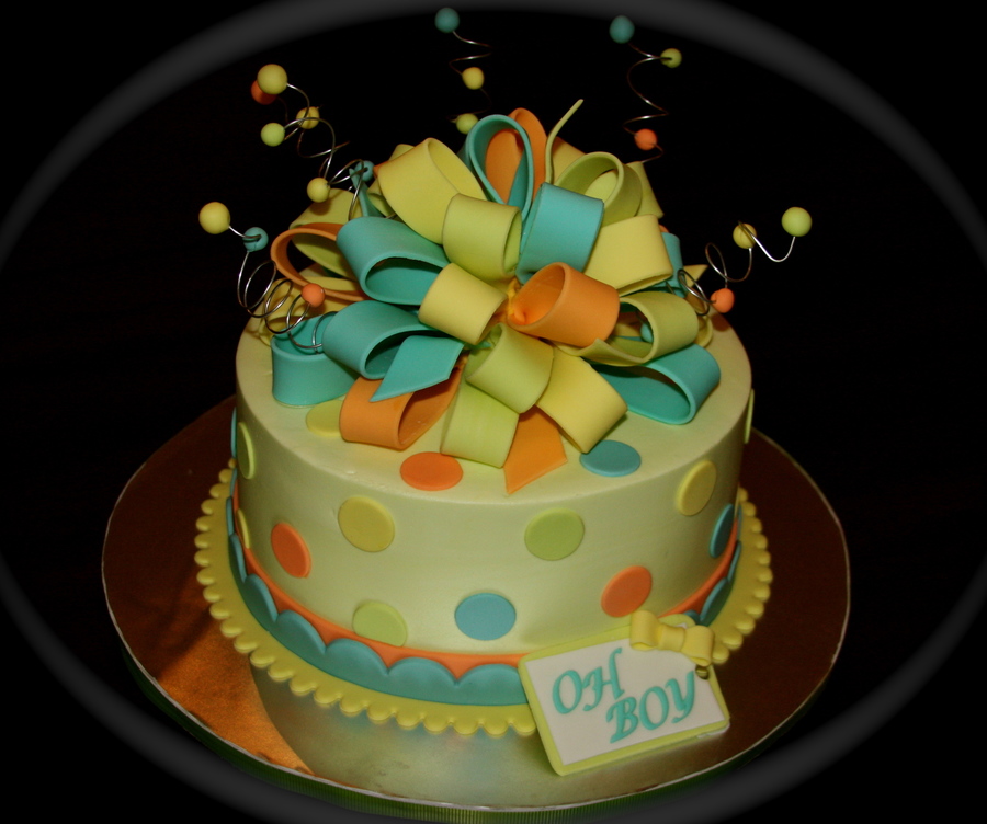 BC with fondant decor. It's kind of generic, but a last min. order. Colors are lime, yellow, blue, and orange. They didn't photograph well in the dim light.