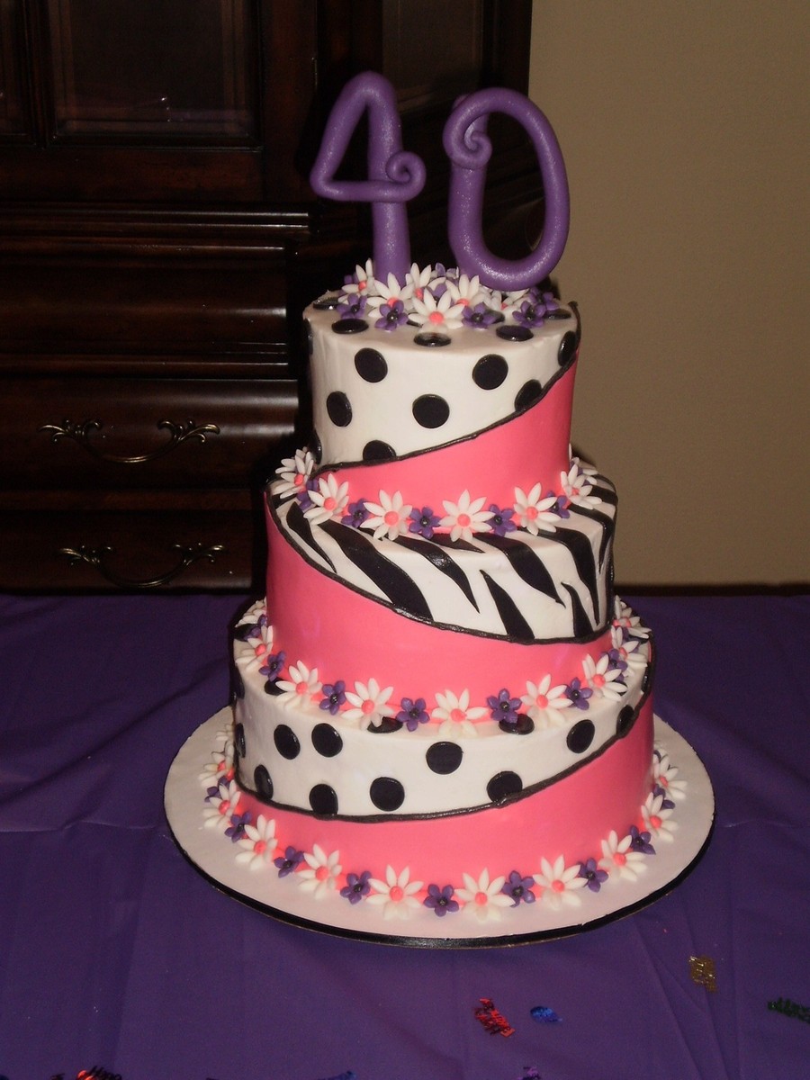 40th bithday cake with buttercream and marshmallow fondant appliques and flowers