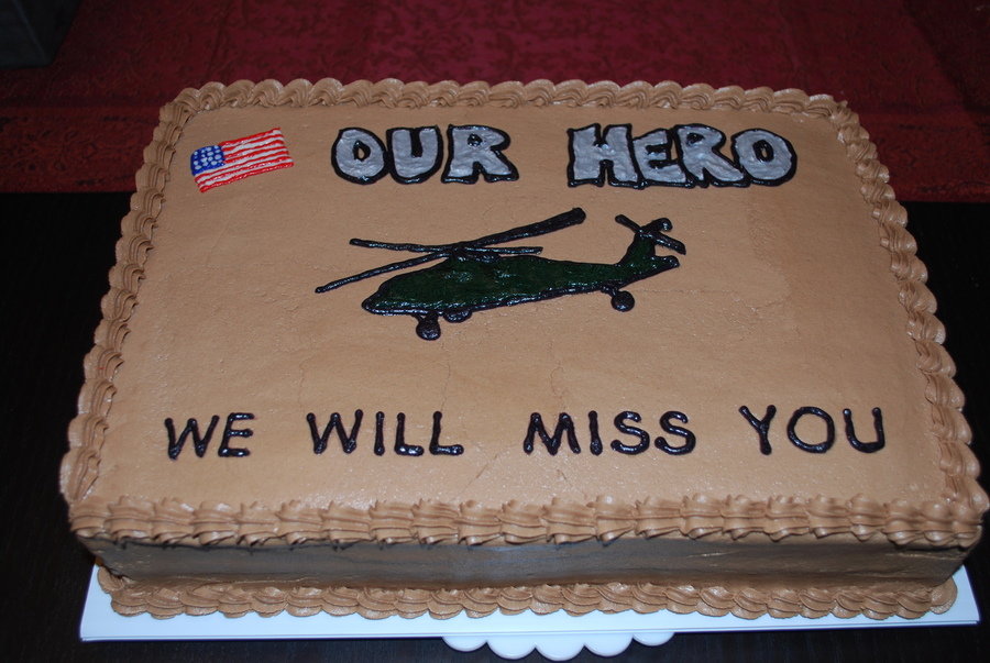 Deployment cake for Blackhawk pilot. Chocolate buttercream icing.