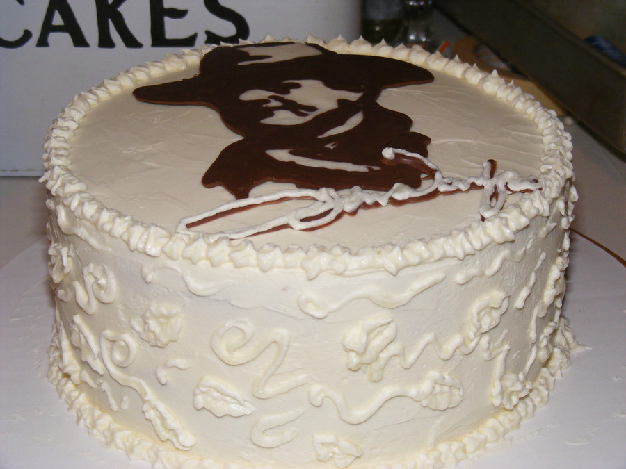 White chocolate ganache whipped icing,white cake and key lime center. Milk chocolate and white chocolate for "The Duke" Special thanks to Ladycakedesign for the inspiration and links to make this