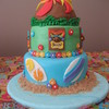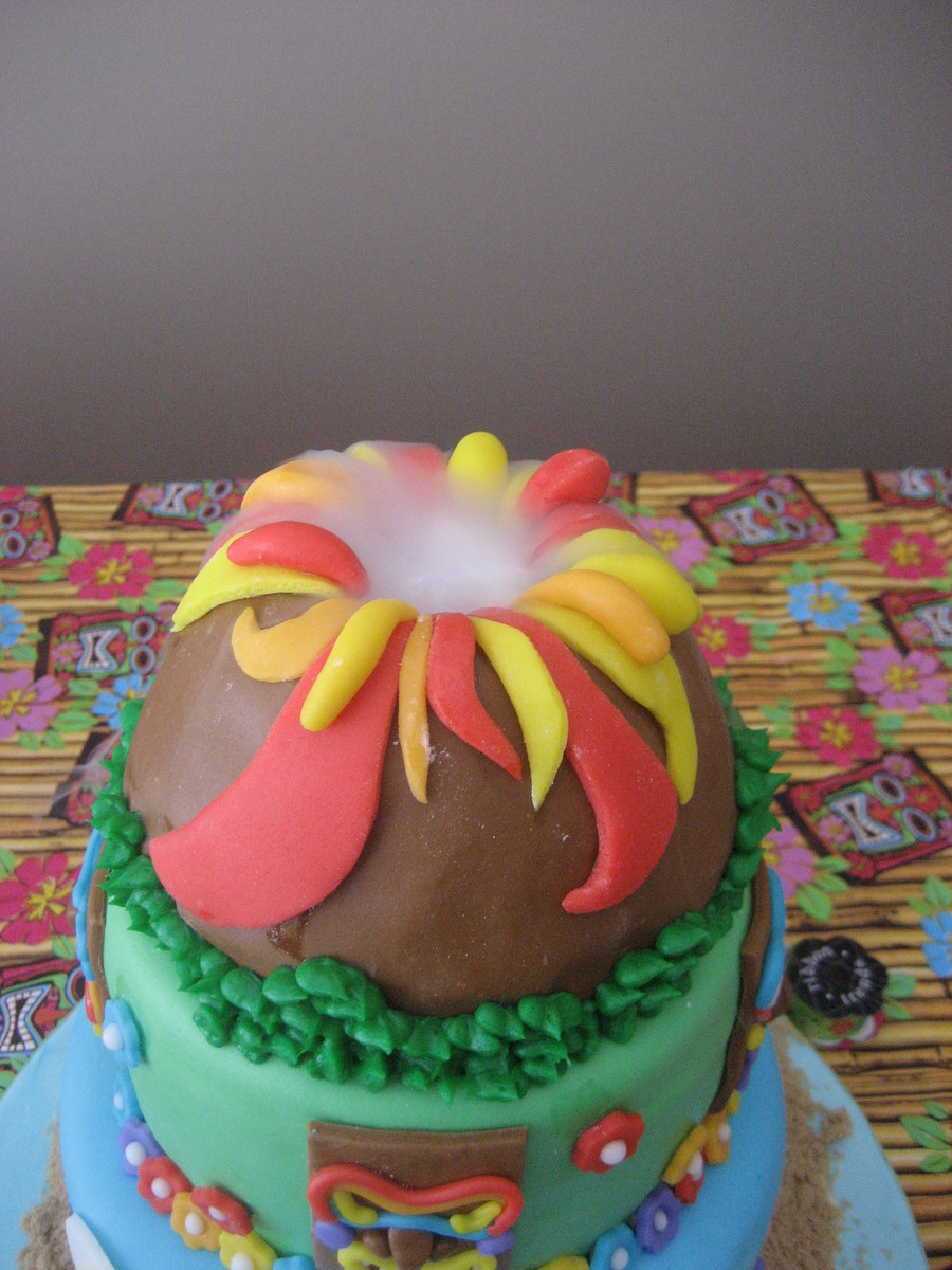 3 Tier Tiki/Luau cake for a 7 year old's birthday. With functional volcano on top that "smokes"