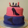 Strawberry cake, with cream cheese filling. Fondant overlay with fondant and gum paste decorations