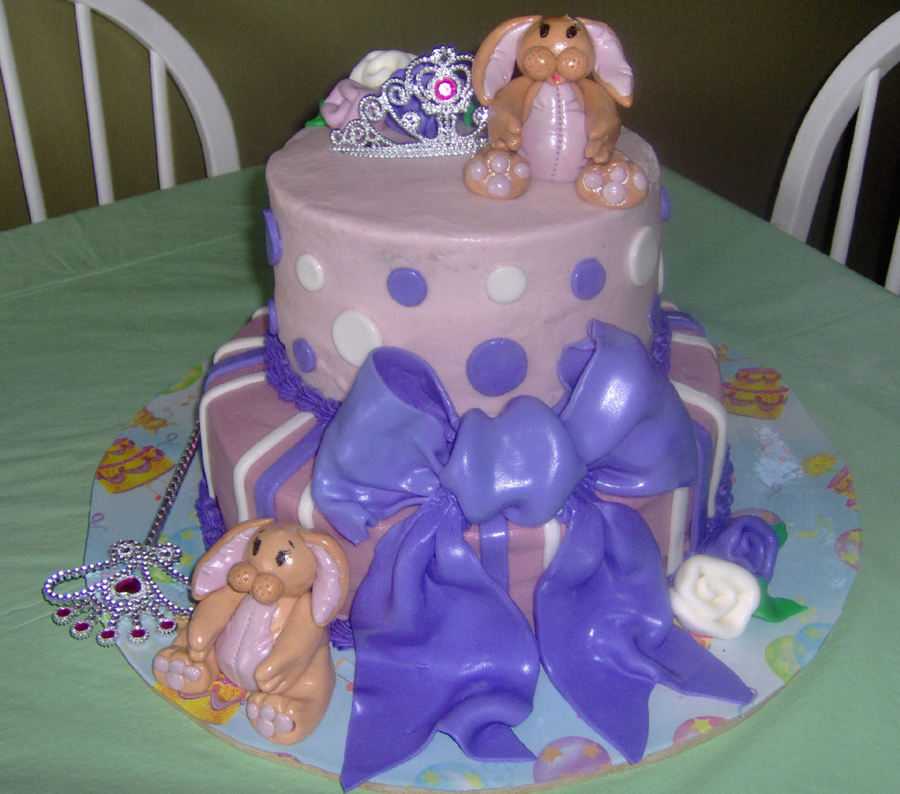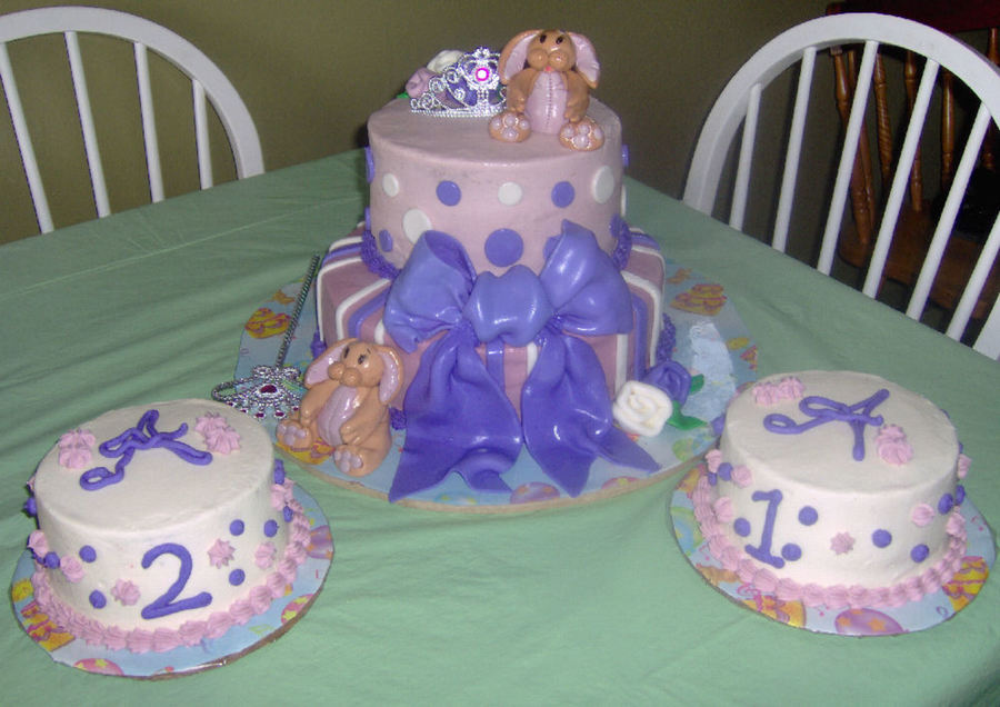 Cakes I just finished for little grand-daughters, pink vanilla cake with strawberry buttercream filling, with fondant accents and 2 little smash cakes for each.