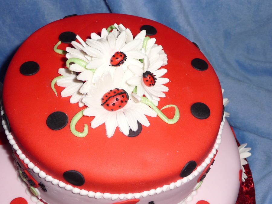 Vanilla cake with strawberry filling. Fondant and gumpaste decorations
