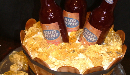 Sugar beer bottles and cake.