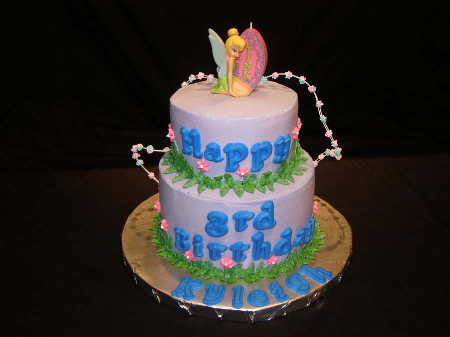 Two tier (funfetti cakes), buttercream filling and icing. Royal icing flowers and stars, fondant lettering.