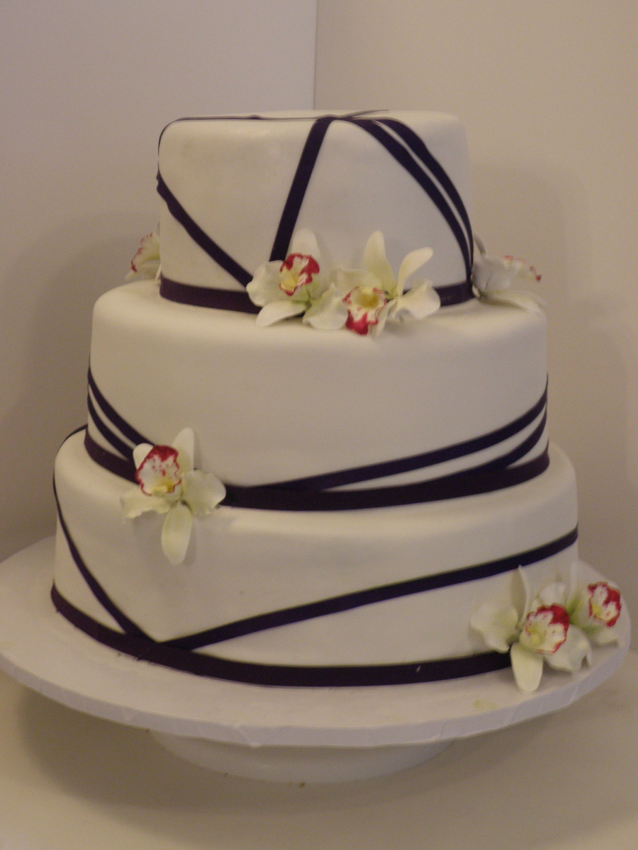 This is a cake I did yesterday for a bride. She wanted this really odd color of purple that I couldnt find so I used a deeper purple color. Hope she liked it!