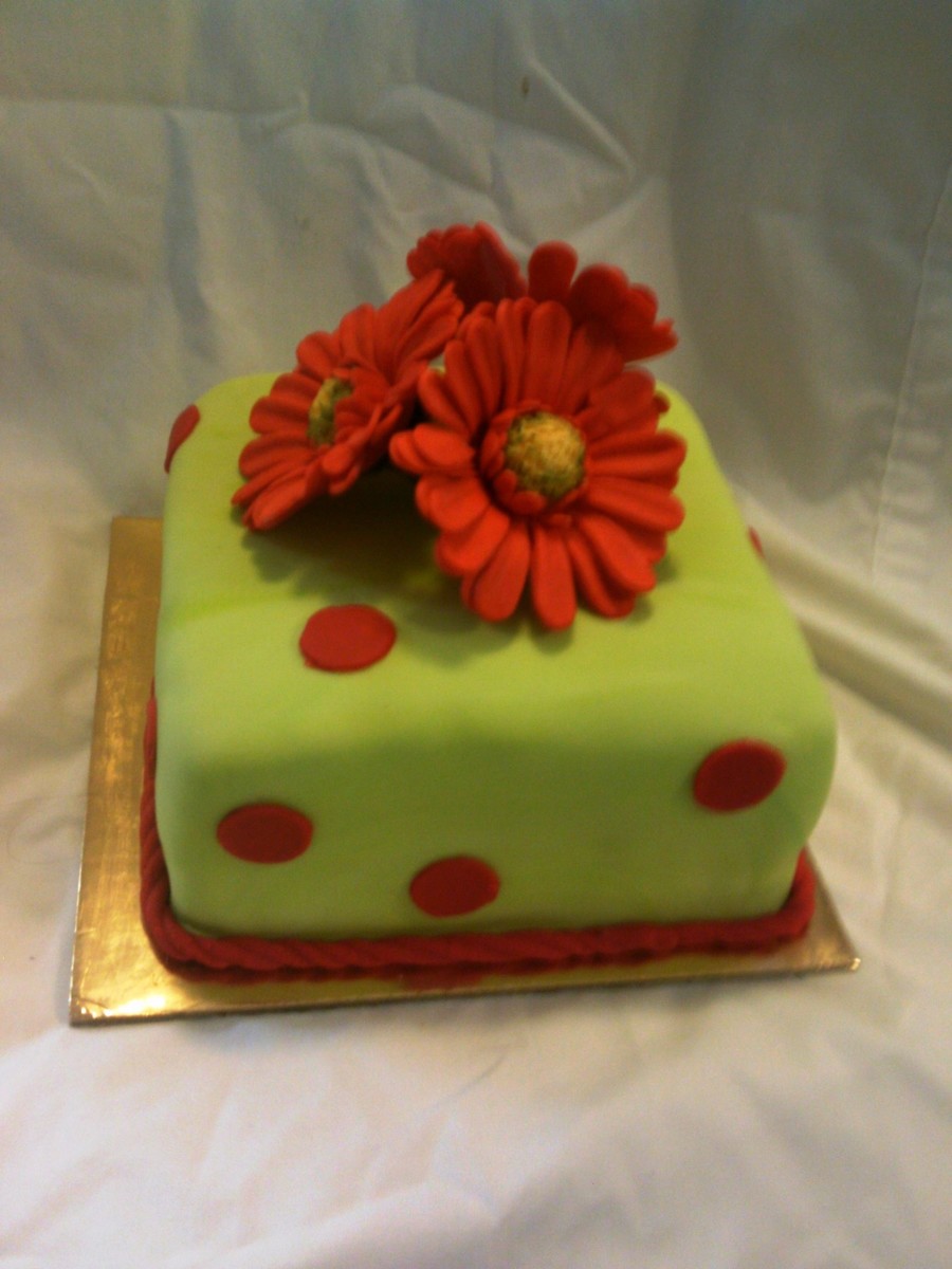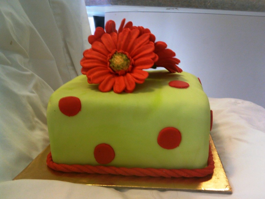 8" orange/almond cake with gumpaste gerberas : )