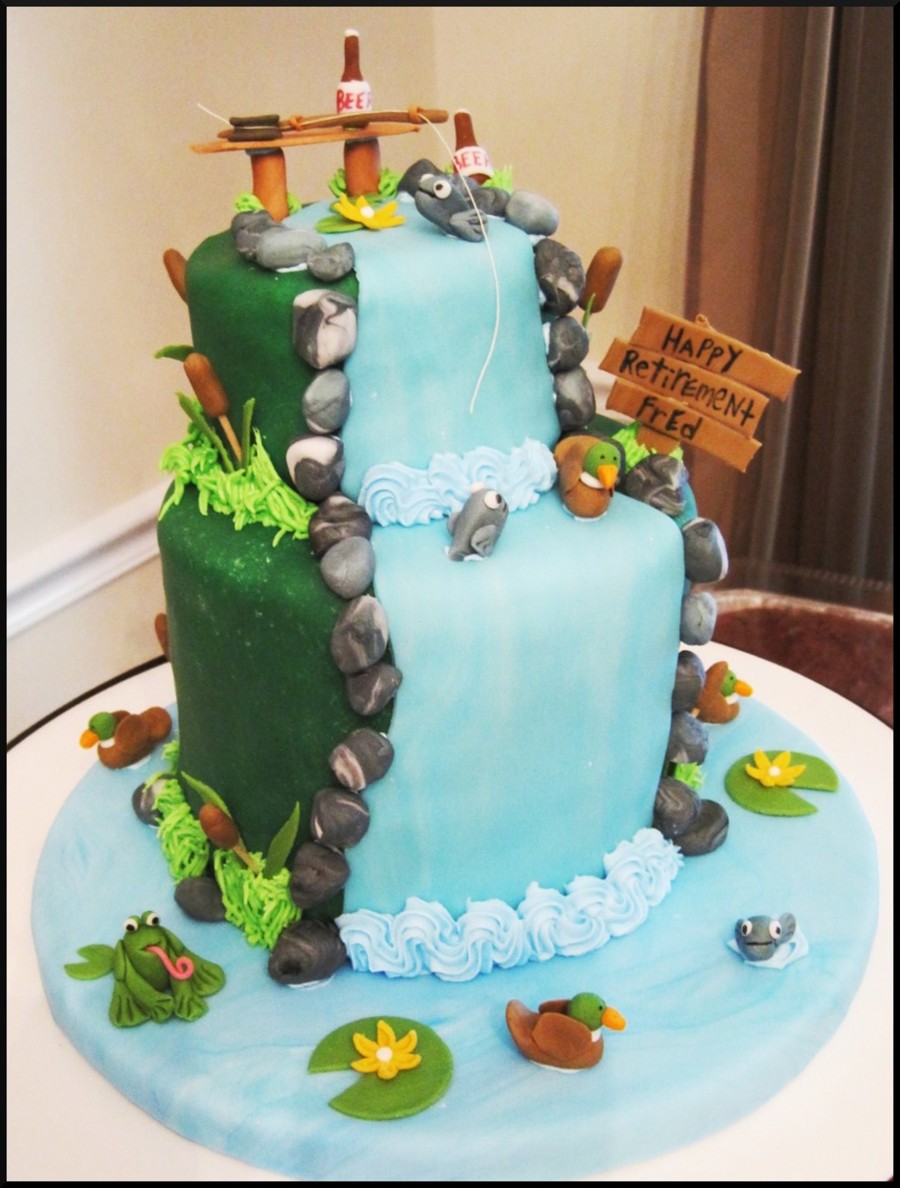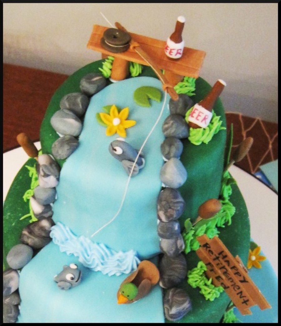 Made this for my dad's retirement party. I wish I was good with sculpting I would have tried to make my dad actually fishing, but oh well. Thanks CC for all the inspiration :)