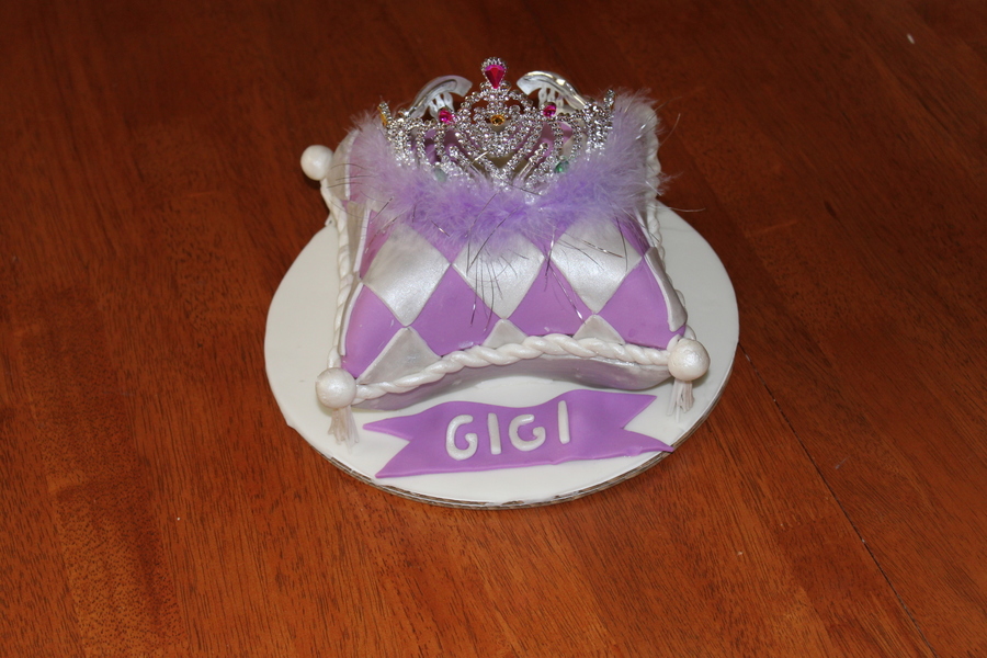 This is my first pillow cake. I used the wilton pillow pan. Fondant with luster dust.