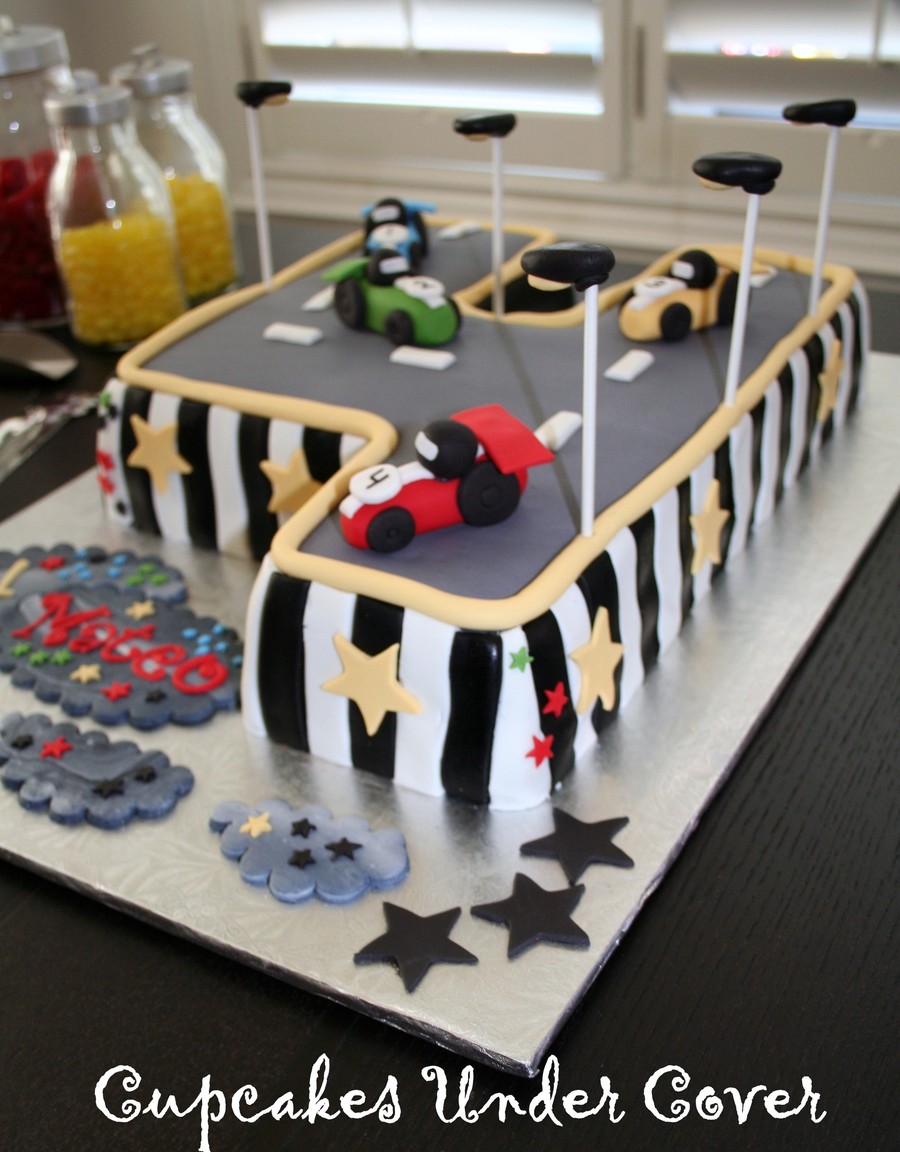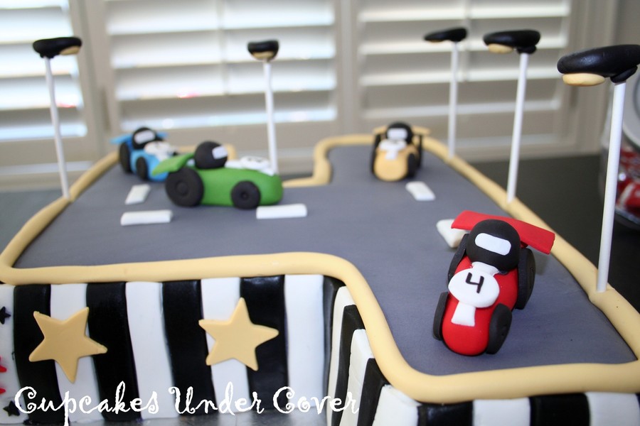 So we have street lights, cars, roads, turning 4, and bubble bees (cookies9.... I just loved Cake Journel's race cake and I knew I had to use it as my inspiration for my son's cake.