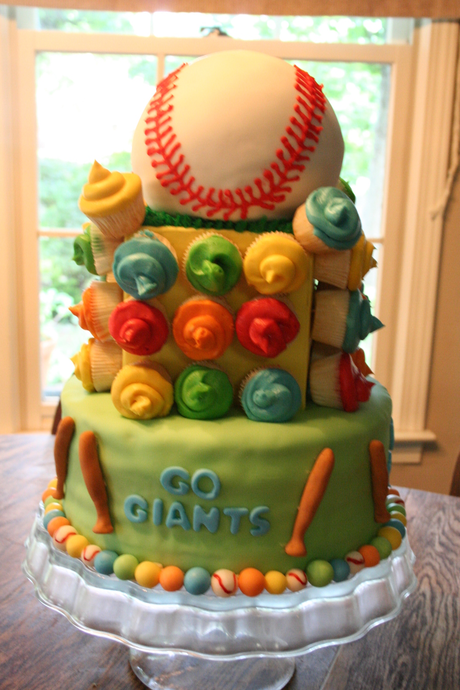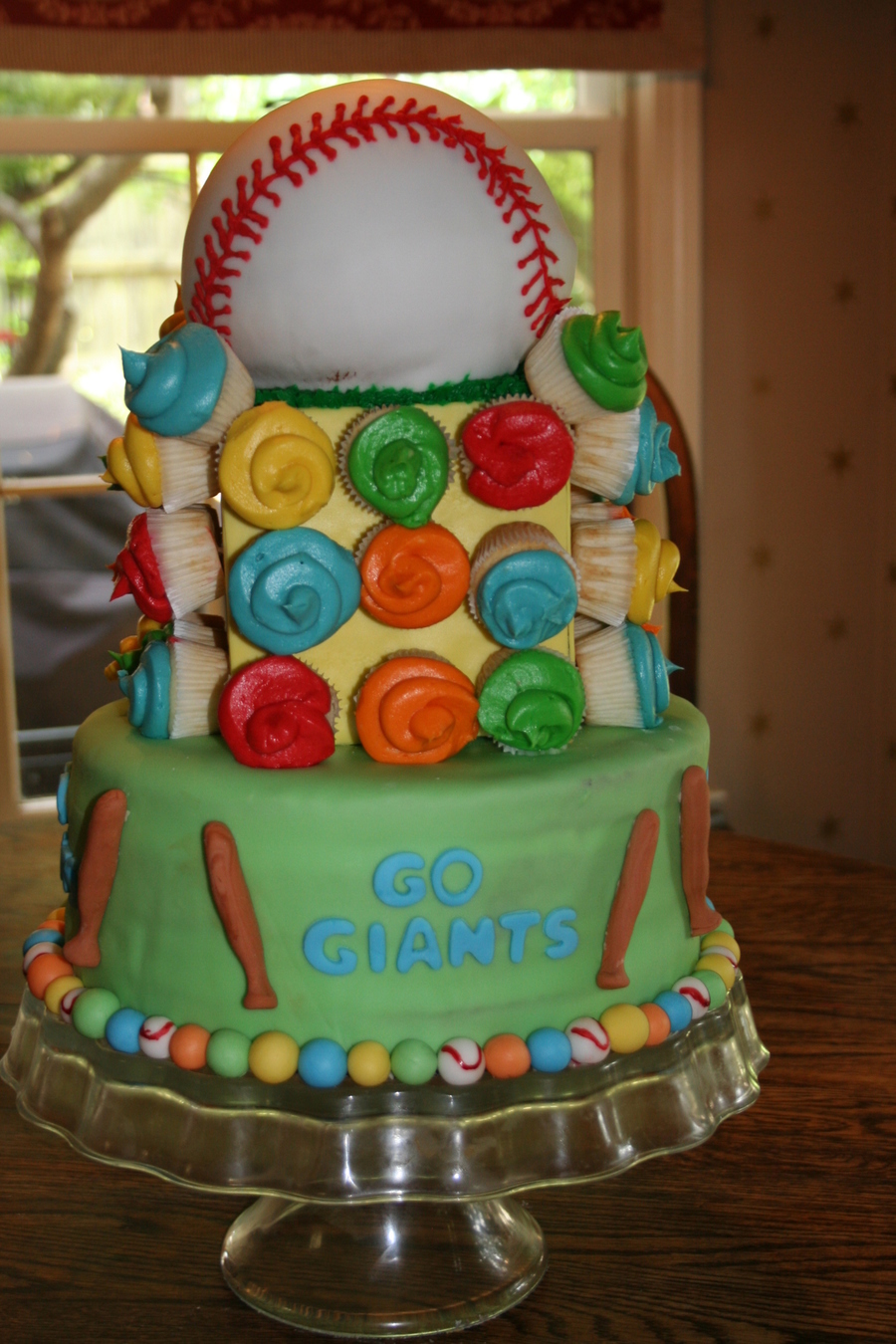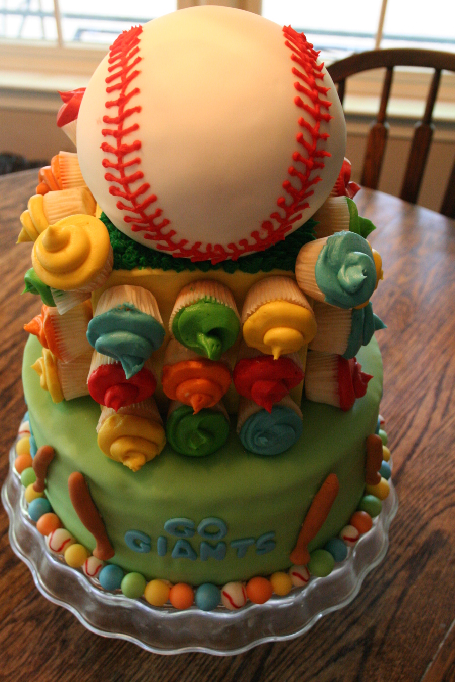 this was actually a cake i made for a little boy baseball team that had won their championship all handpiped