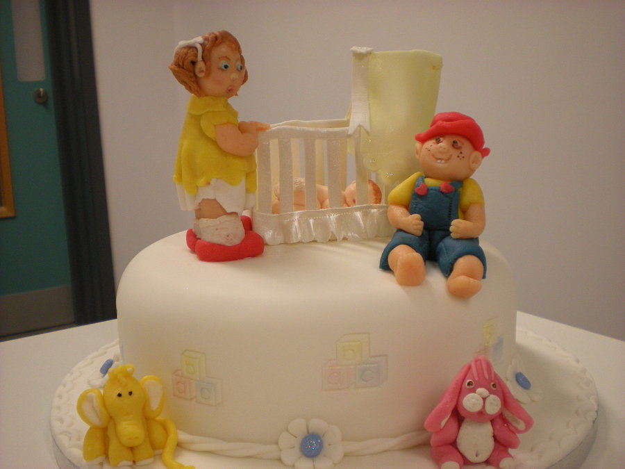 the 2 spoilt children looking at their new baby .