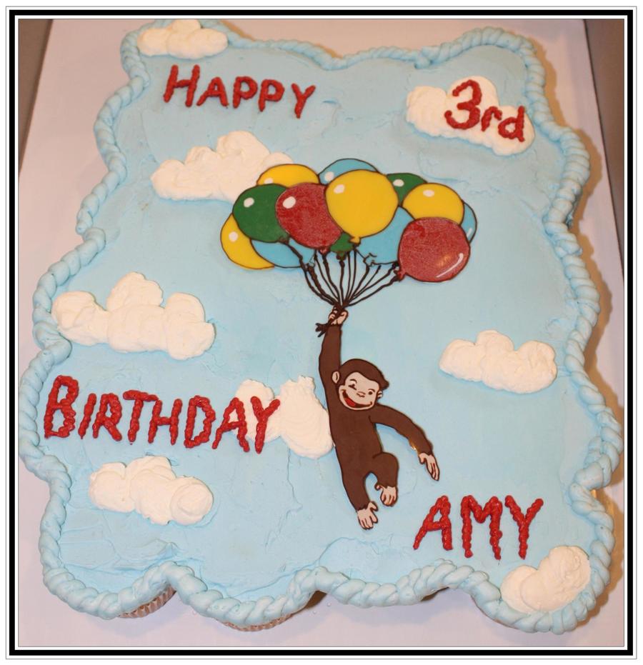 Yellow and chocolate cupcake cake with IMBC and chocolate George and balloons. TFL