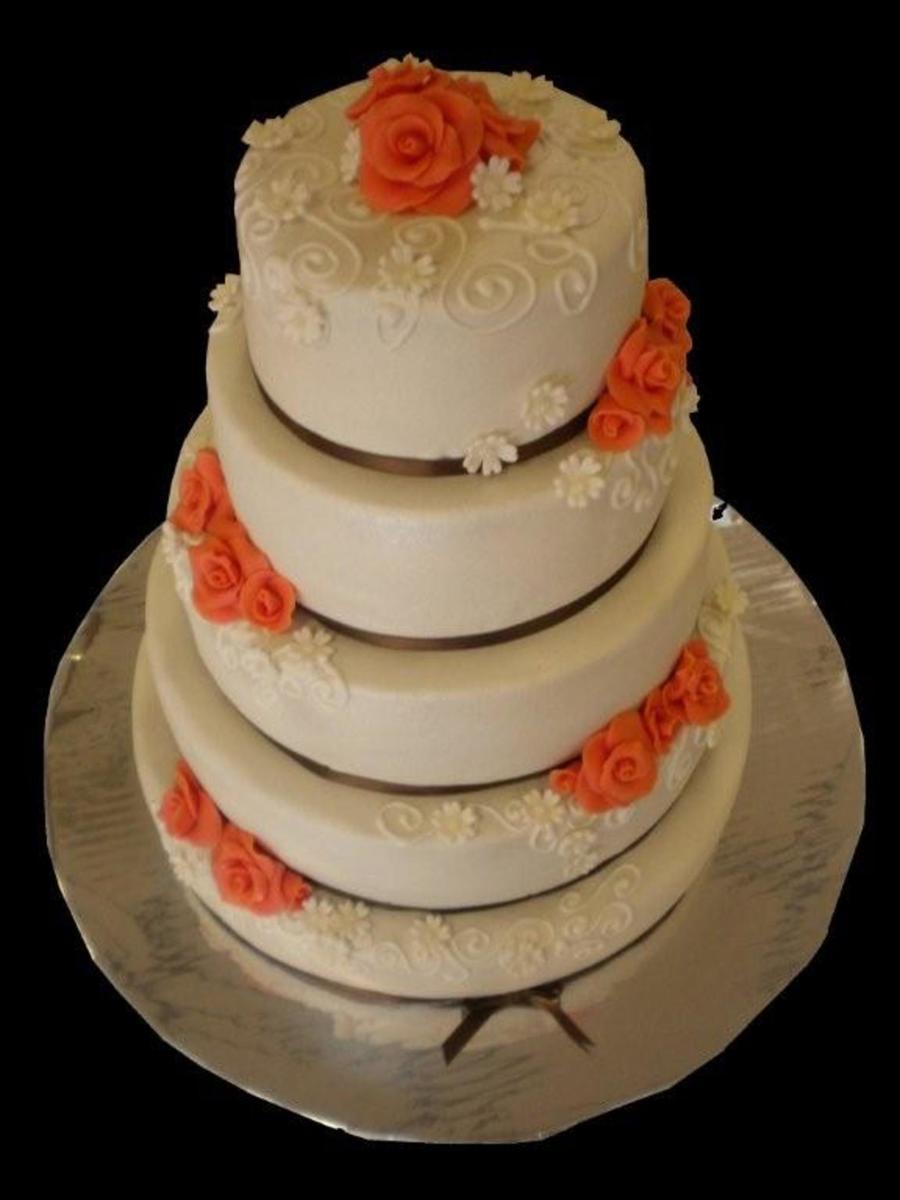 round wedding cakes, covered and decorated with marsepijn and icing.