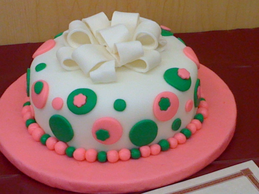 My 1st attempt at fondant. It's a yellow cake with buttercream icing and buttercream fondant.