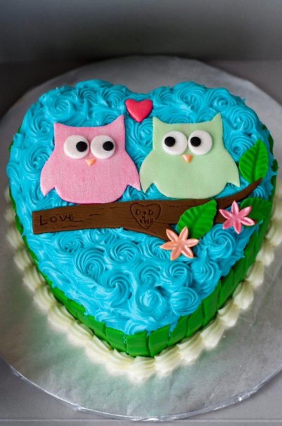 I made this for my sister's anniversary last year. Iced with buttercream and decorated with fondant. Super easy cake!