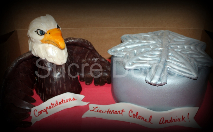 The eagle is made from chocolate "clay" and the cake was airbrushed with silver.