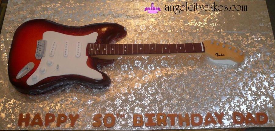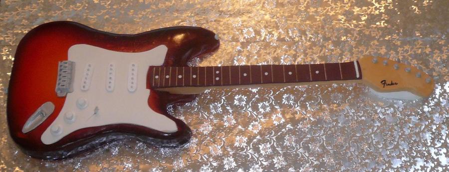We originally made a Fender Electric Guitar Cake just so we could take pictures of it and post them on our website. Within three weeks we got an order. Unfortunately the customer said she wanted the cake to look like the one on our website, so this cake looks just like our other one. lol