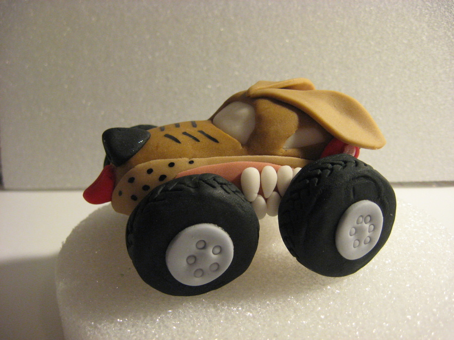 Made this Monster Truck for a little 4 year old birthday boy, Hudson, who loves Monster Trucks. Copied the Monster Truck "Monster Mutt" from pictures on the internet. Next time I will work more on the under carriage. Monster Trucks are usually jacked up and I did not have time to make the under carriage to give it more height.