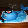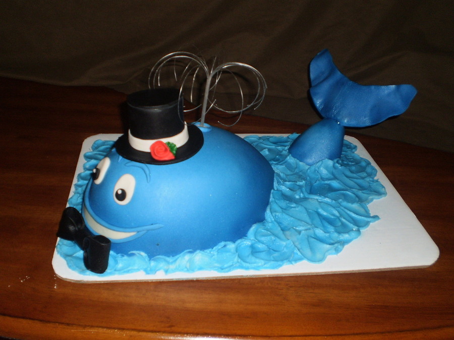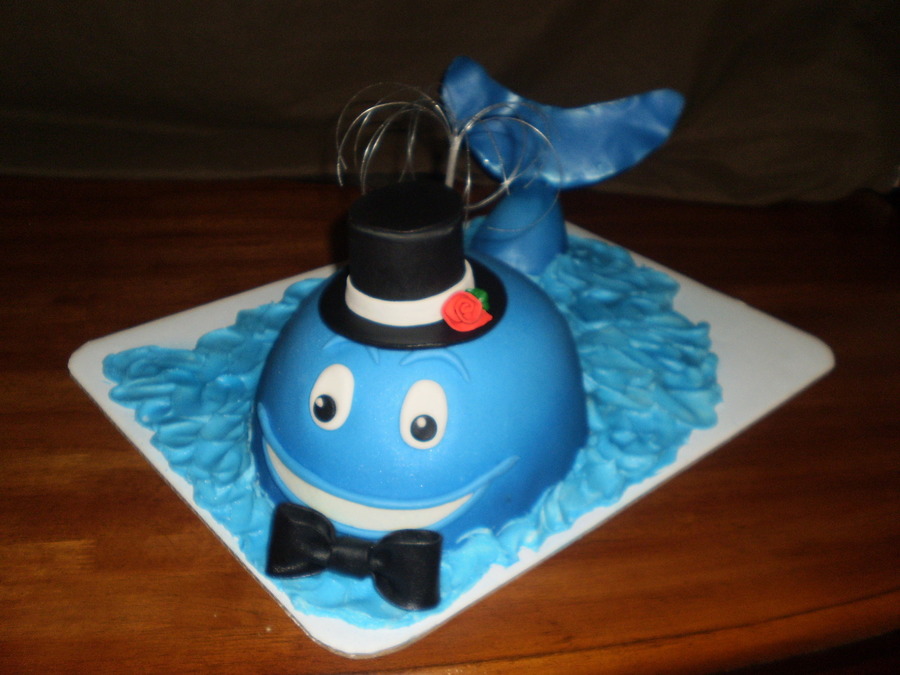 This cake was requested by a 10 year old little girl. Her mother asked what she wanted on her cake, she responded, "A whale wearing a top hat and a bow tie!" How funny, I love inventive and creative kids!!!!