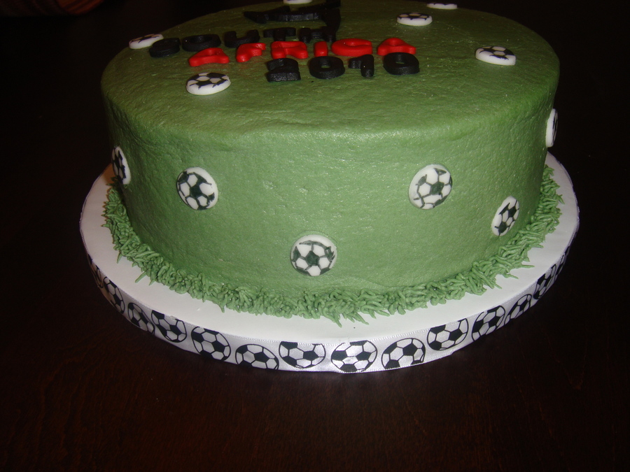 Vanilla cake with raspberry filling. Buttercream icing with fondant accents.