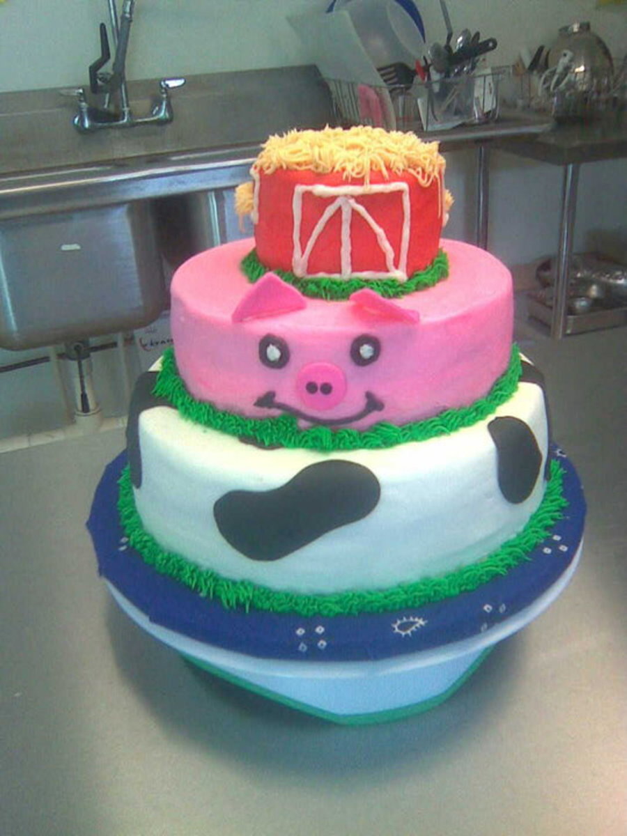 This was a fun cake to make. It's vanilla with buttercream icing and fondant accents. He was three and 'loved' his barnyard cake.