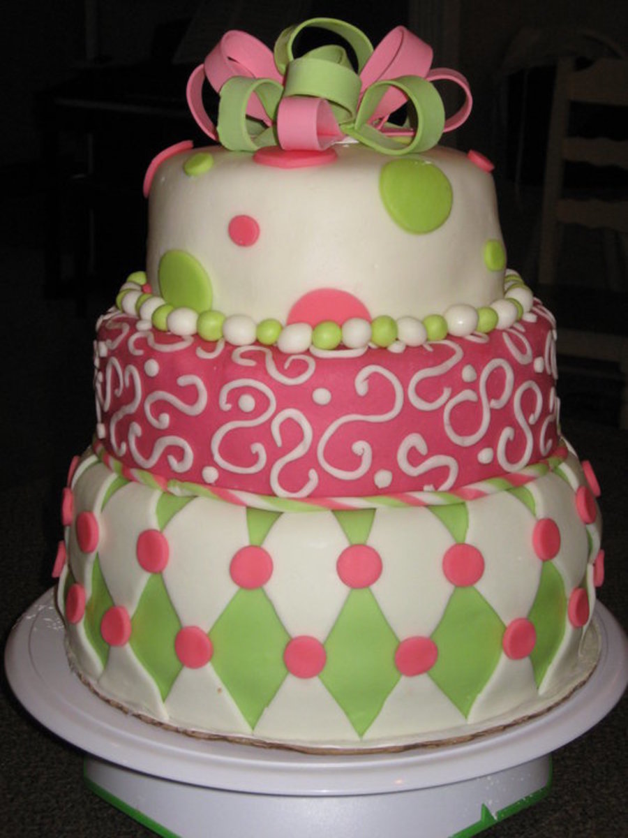 This cake was for my daughter's 20th birthday. It was my husband's and my first attempt at a fondant cake... what fun. Cake was inspired by one seen on piece-a-cake.com.