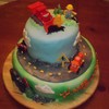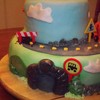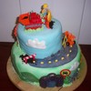 Two tier fondant w/ store bought figures and Oreo "dirt'