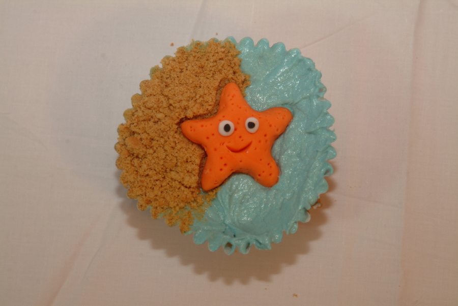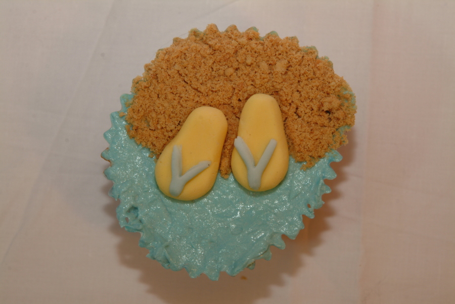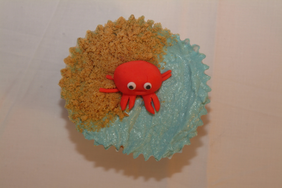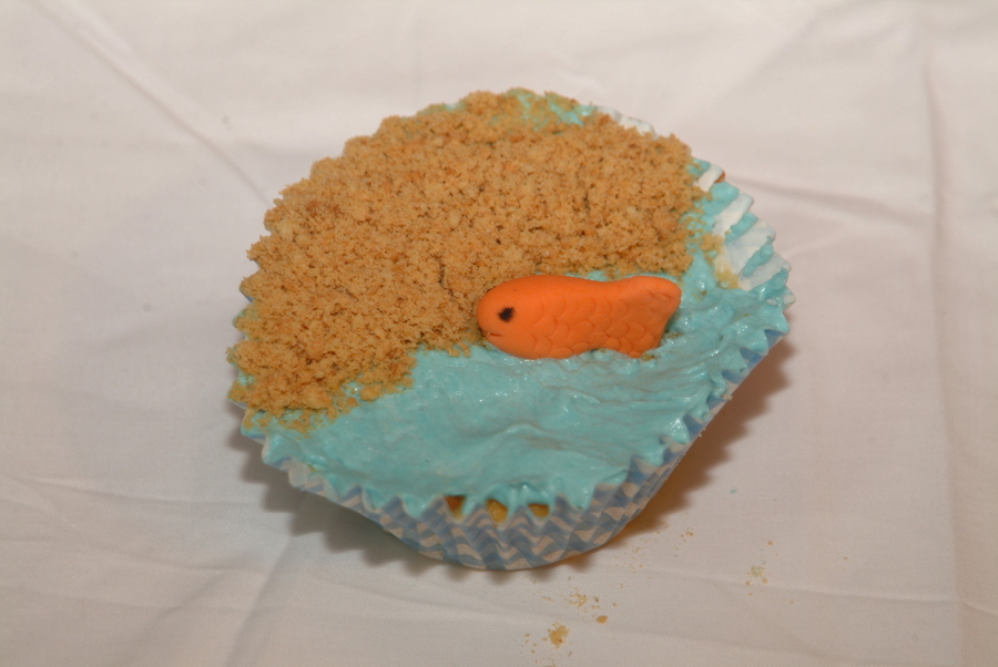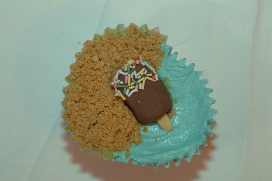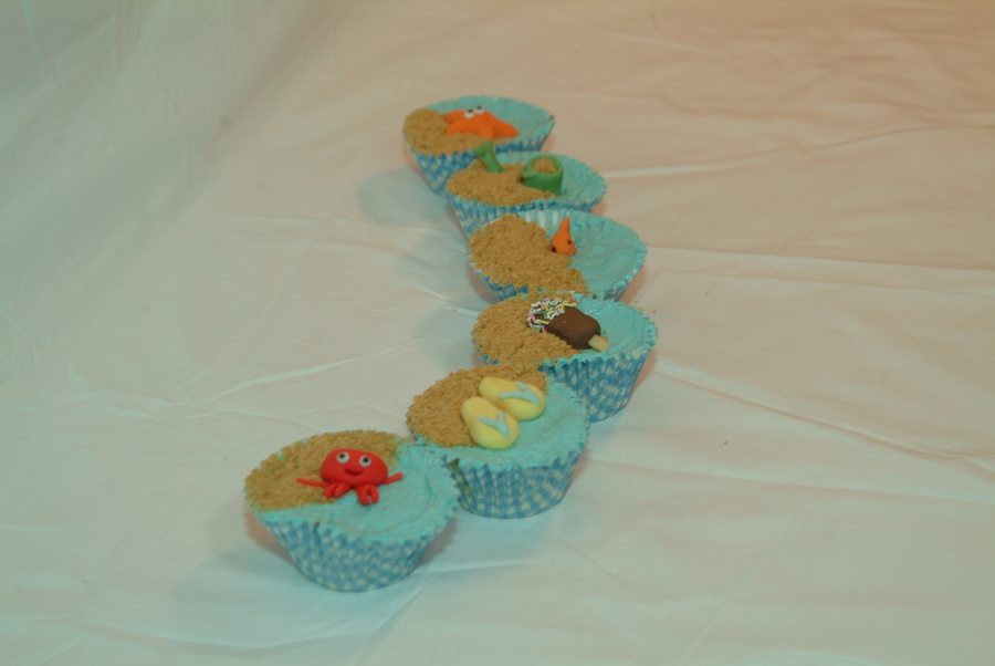 Made for my son's class on the last day of term. Vanilla cupcake & butter cream, digestive biscuit sand and fondant/gum paste toppers.